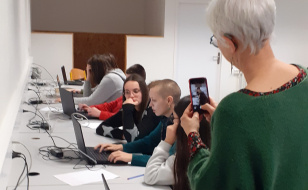 La classe de 5eF en sortie à la médiathèque de Quimperlé